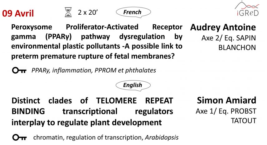 EventsMardi de l’iGReD: Audrey Antoine & Simon AmiardHome › Events › Mardi de l’iGReD: Audrey Antoine & Simon Amiard9 April 202412:45Amphi Limagne, CRBC Building, Medical School Add to my calendar