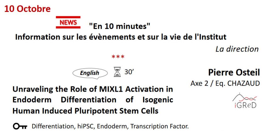 EventsMardi de l’iGReD: Pierre OsteilHome › Events › Mardi de l’iGReD: Pierre Osteil10 October 202312:45Amphi Limagne RDC Bât. CRBC - Site Dunant Add to my calendar