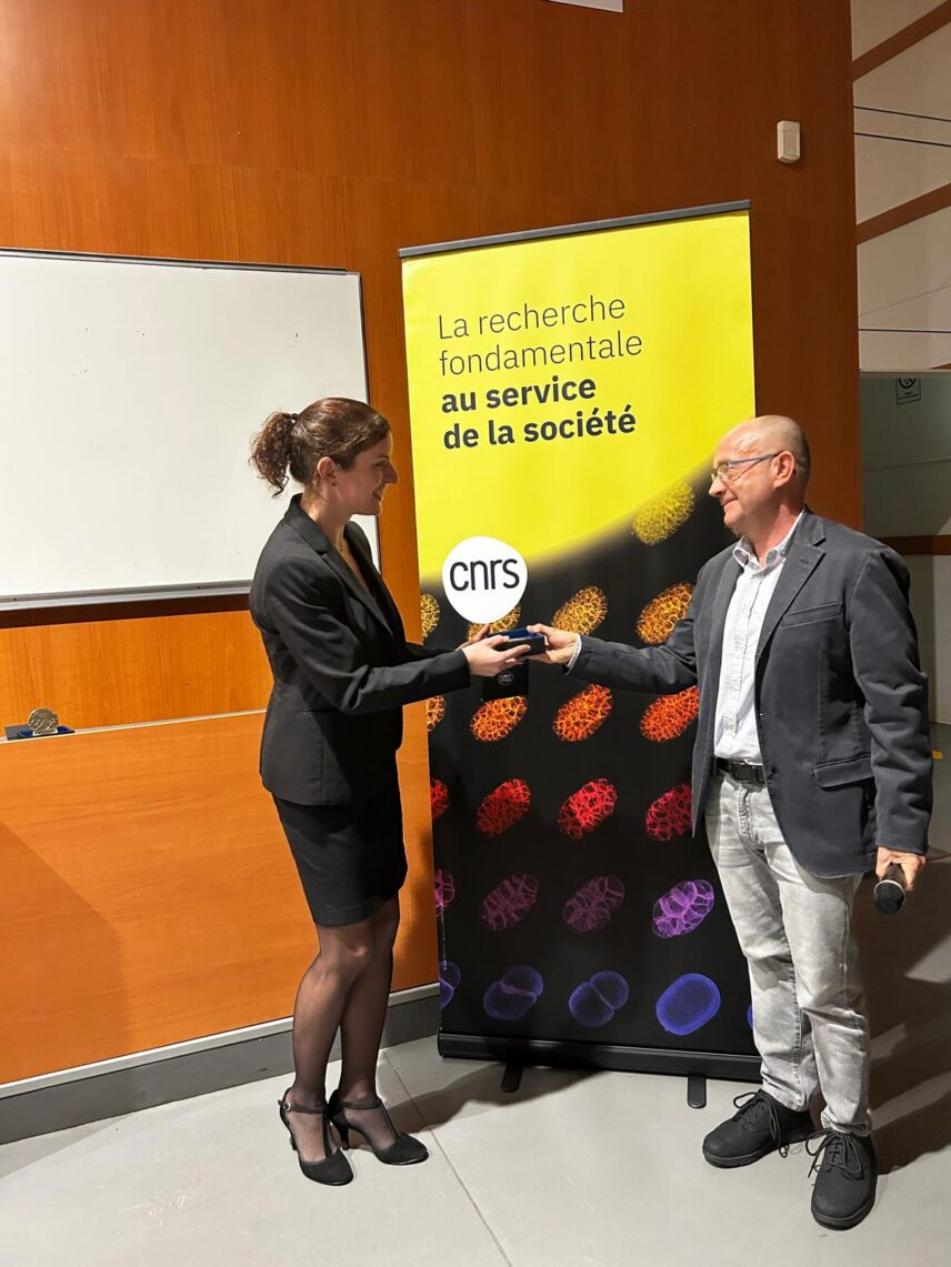 Le 11 décembre dernier, Heidi Serra a reçu la médaille de bronze du CNRS lors d’une cérémonie officielle présidée par Florence Morineau, déléguée régionale du CNRS Rhône Auvergne, et Mathias Bernard, président de l’Université Clermont Auvergne. La distinction lui a été remise par Fredy Barneche, futur directeur scientifique adjoint du CNRS Biologie.